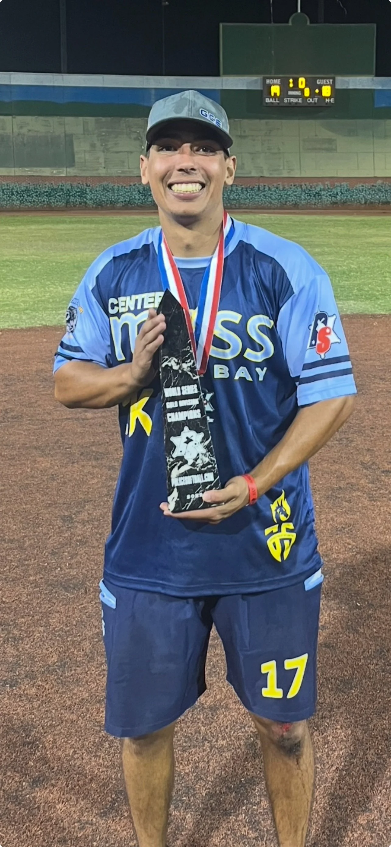 The 2023 season began and it was more of the same. RD locked down center field for Center Mass and continued having no fear, hosing people trying taking extra bases and making ESPN highlight reel catches, while saving runs, taking away extra base hits and leading his team to the 2023 Waxahatchee National Championship in the Gold Division. When it was time to hand out awards for the tournament, the opposing team who took second in this event, echoed boos when RD didn’t win the MVP. He did however, win the tournament Defensive MVP, saving countless runs in the windy playing conditions on the final day and finished second on the team in average.